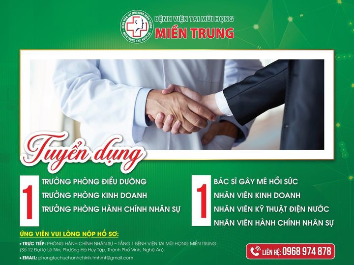 🔥 [ TUYỂN DỤNG NHÂN SỰ ] - CƠ HỘI VIỆC LÀM HẤP DẪN TẠI BỆNH VIỆN TAI MŨI HỌNG MIỀN TRUNG 🔥